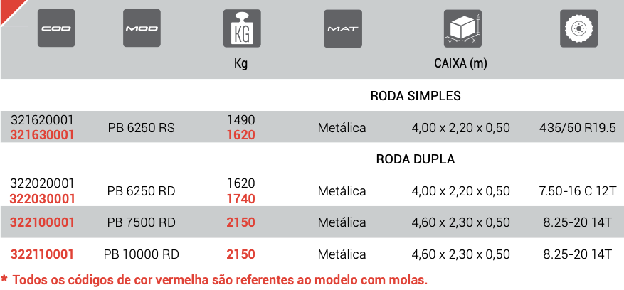 - Instalação elétrica com ficha de ligação ao trator provida de 7 pernos.